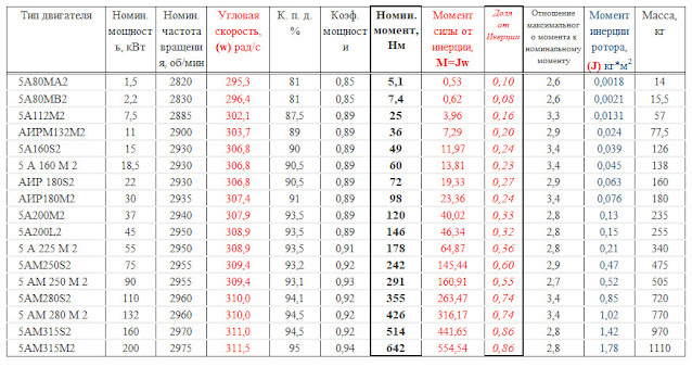 Заходим на сайт с техническими характеристиками электродвигателей, где указаны их основные характеристики в т.ч. и Момент инерции ротора: